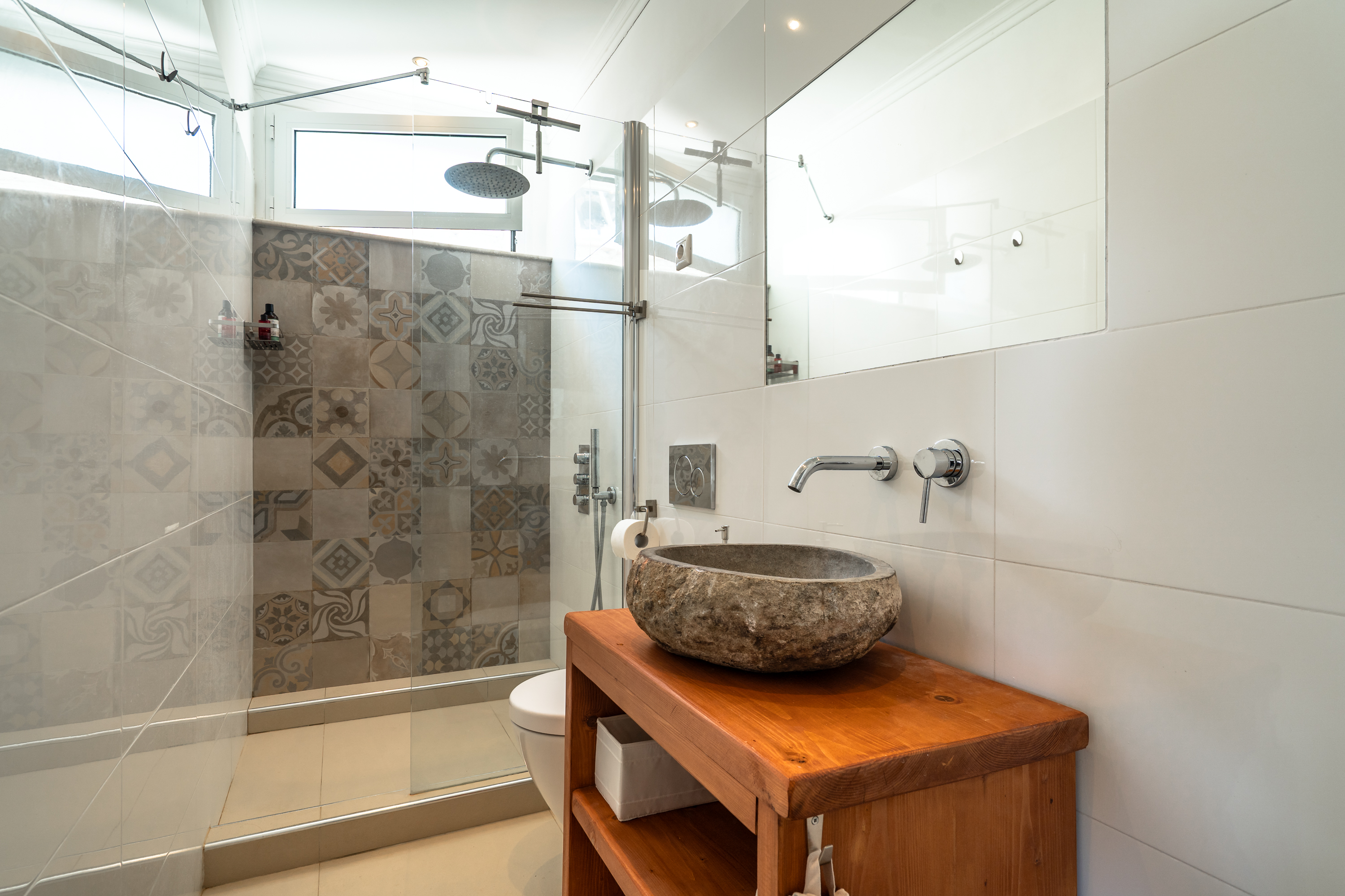 The property comprises two separate houses: the villa upstairs (accommodating 6 persons) and the apartment downstairs (4 persons + 2 extra maximum - extra service), making it ideal for two or three families.