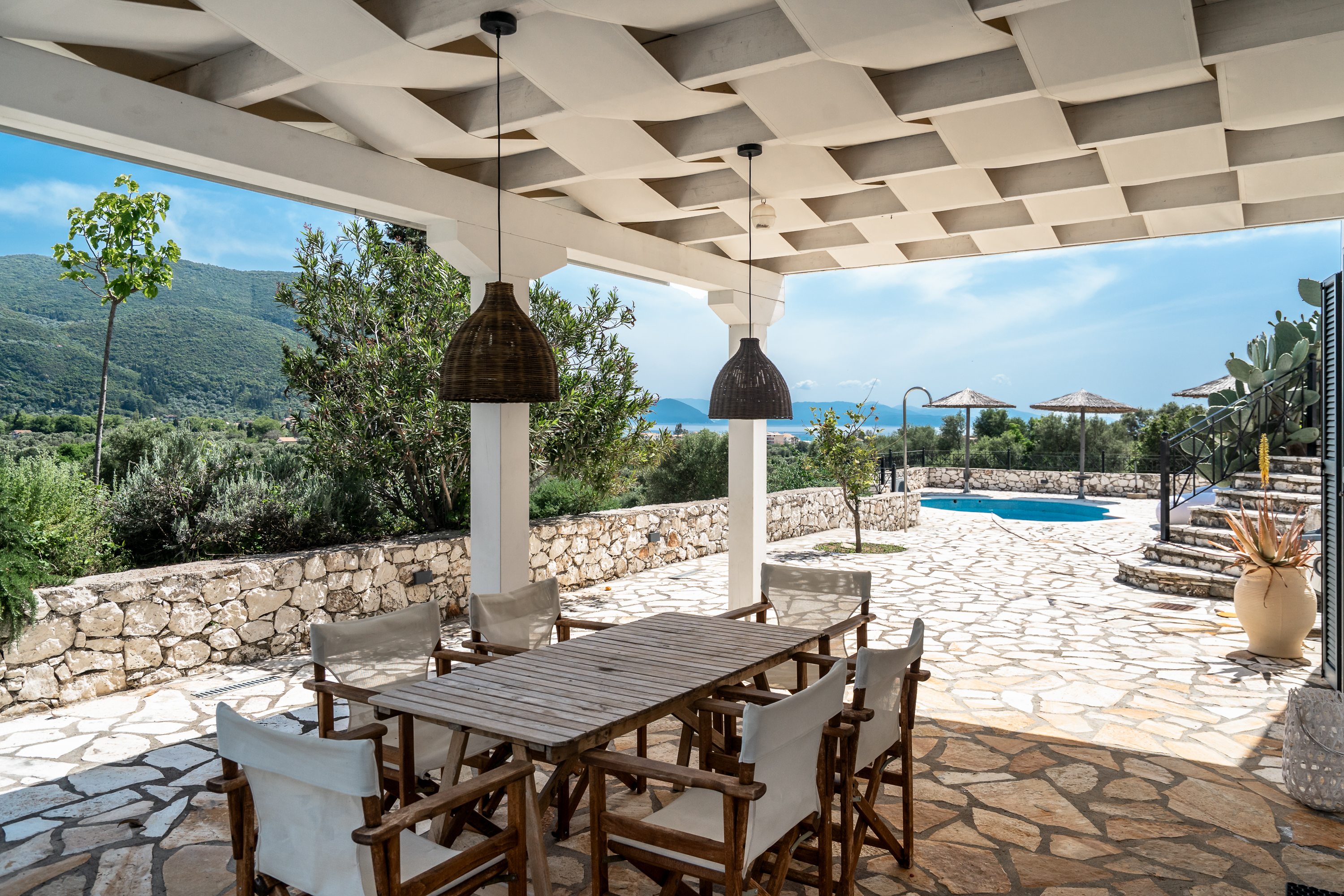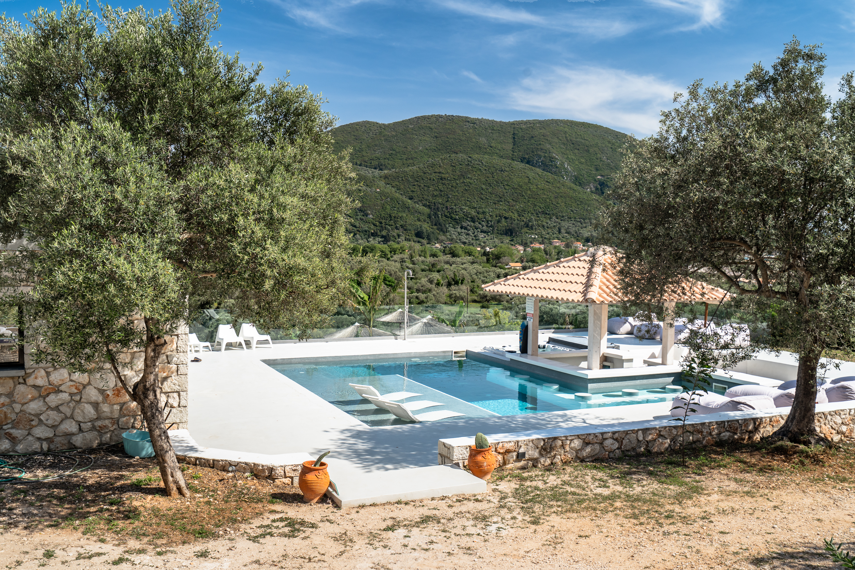 Villa Oliveira offers you a perfect Greek holiday on a 5000 square meters plot with a sea view, two swimming pools, and a jacuzzi (extra service). Situated close to the sea, Villa Oliveira ensures total privacy amidst olive trees.